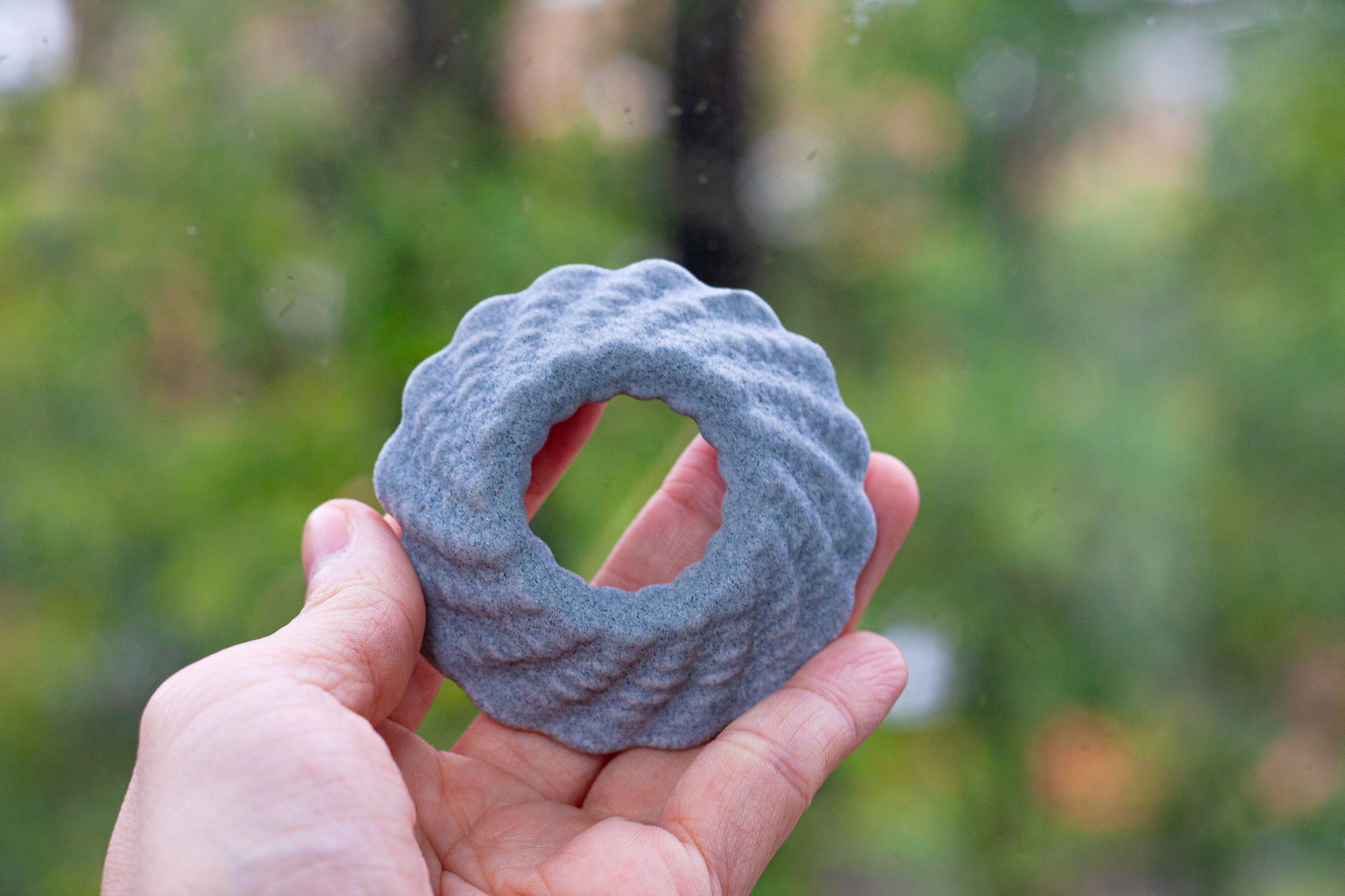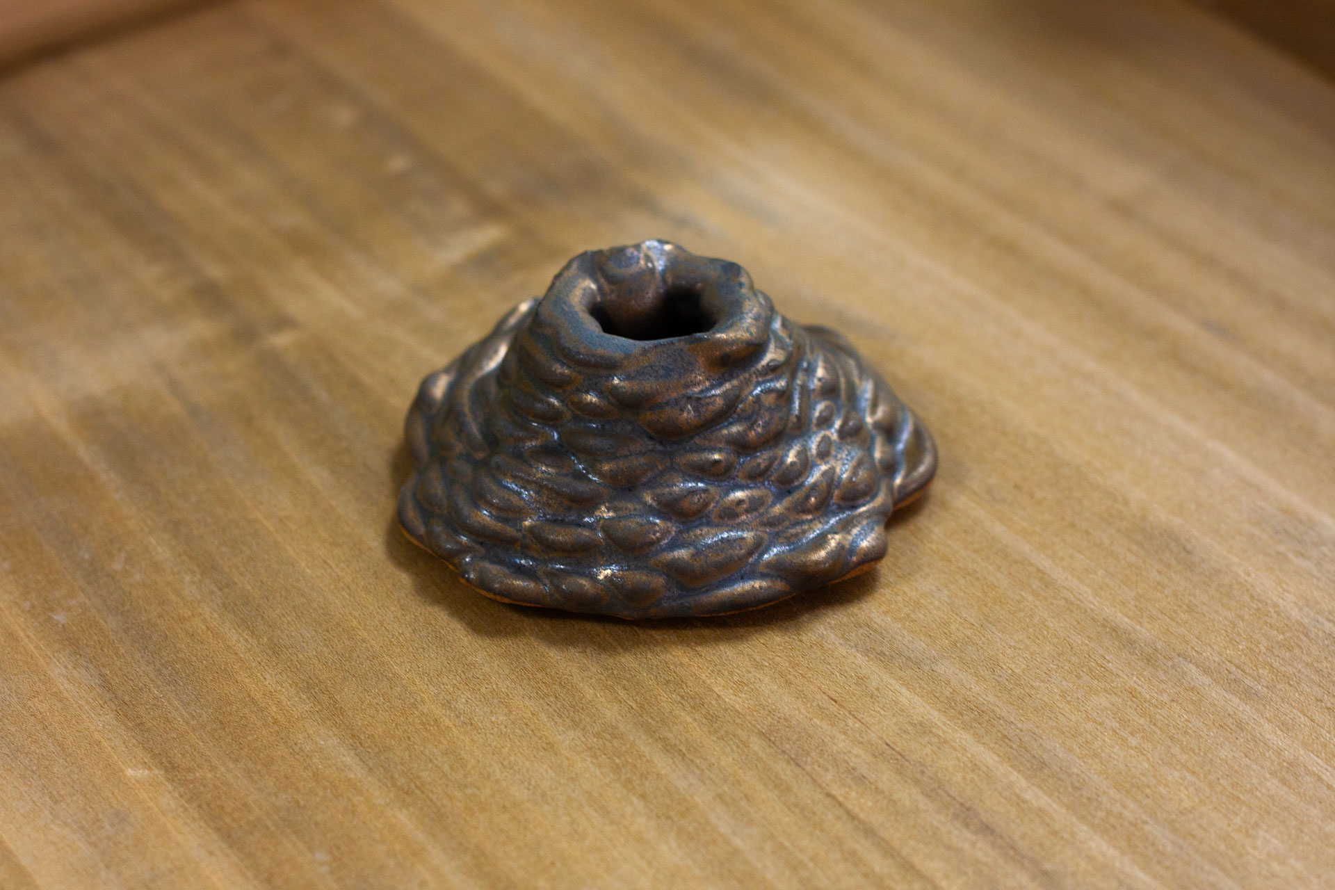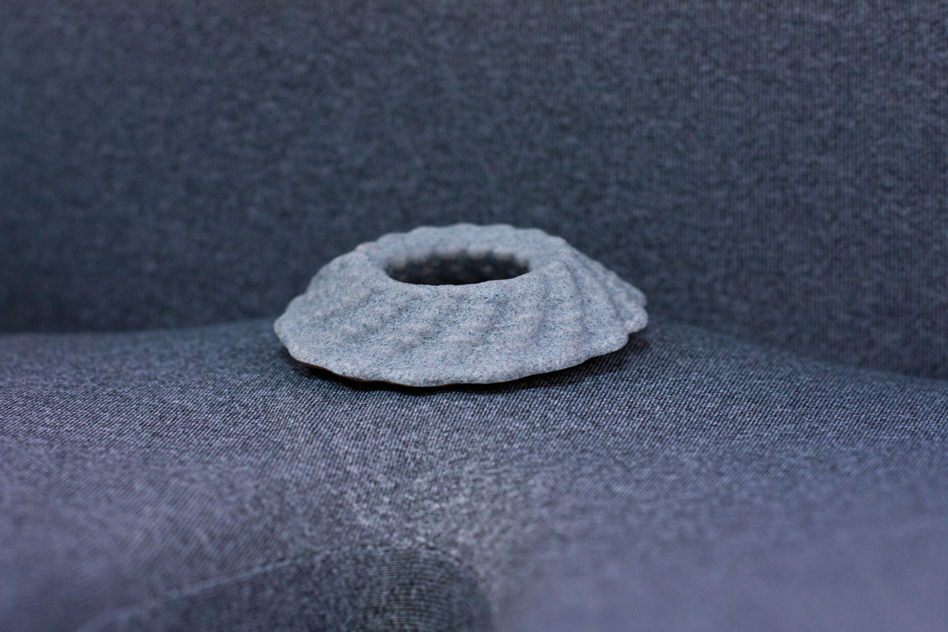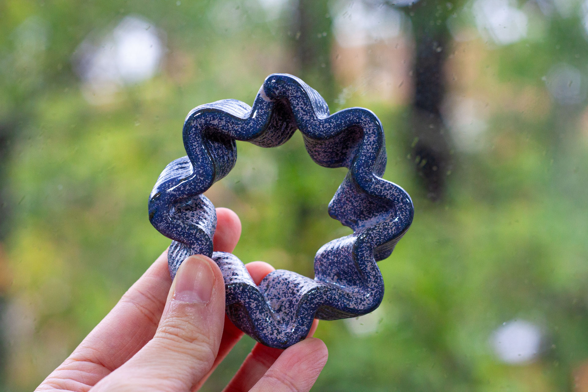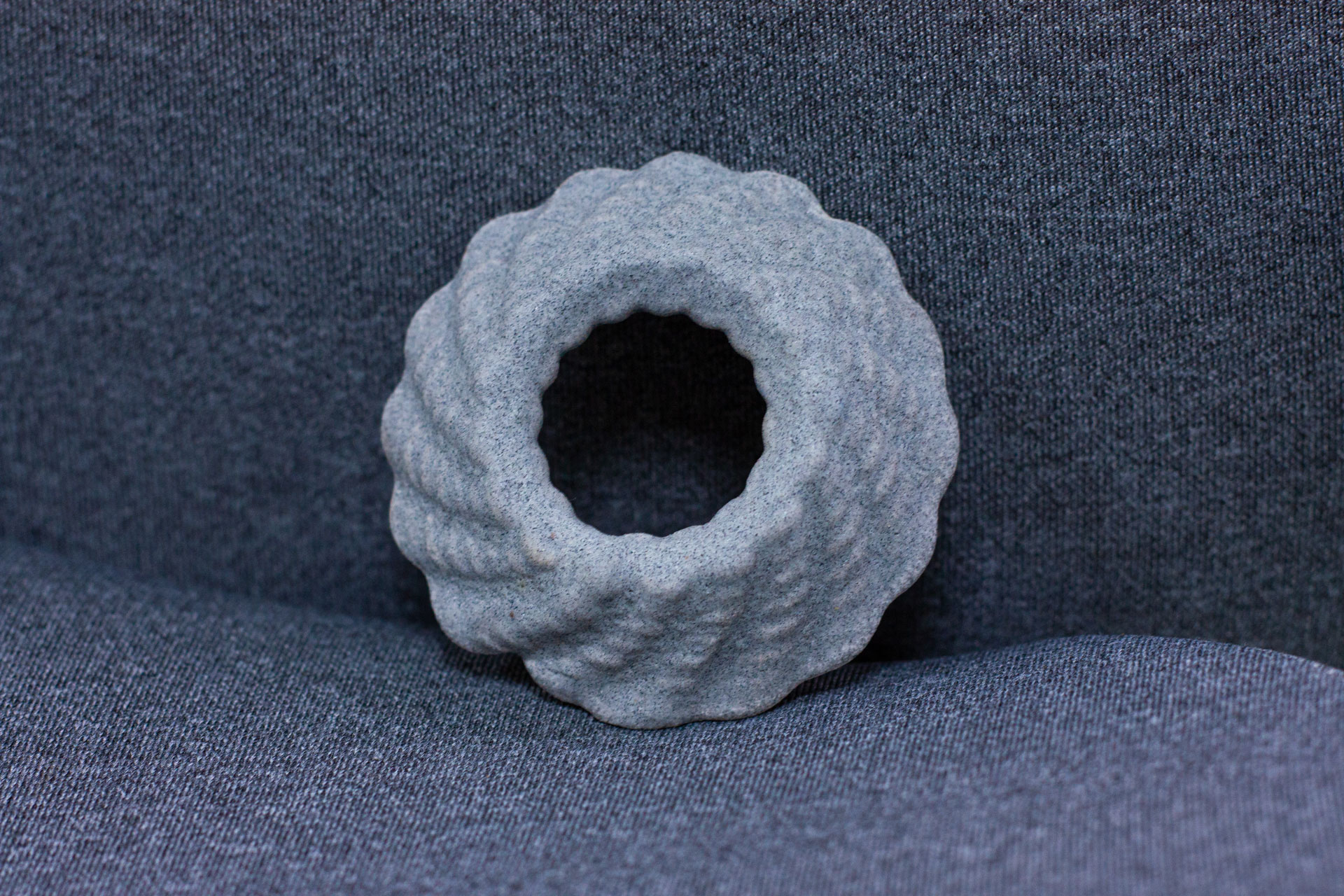 參數幾何彩漸變花叢這次受到國立陽明交通大學建築研究所、應用藝術研究所學生團隊的委託討論土的適合施作程度以及上釉。該學生團隊利用KUKA機器手臂以及自行設計的噴嘴以及推進器來3D列印陶瓷,並使用參數化程式grasshopper來繪製以及切片模型,列印出嚴謹也富含美感的圖樣。最後再委託我們上釉燒製。非常令人激賞的利用科技輔助陶瓷創作的作品。