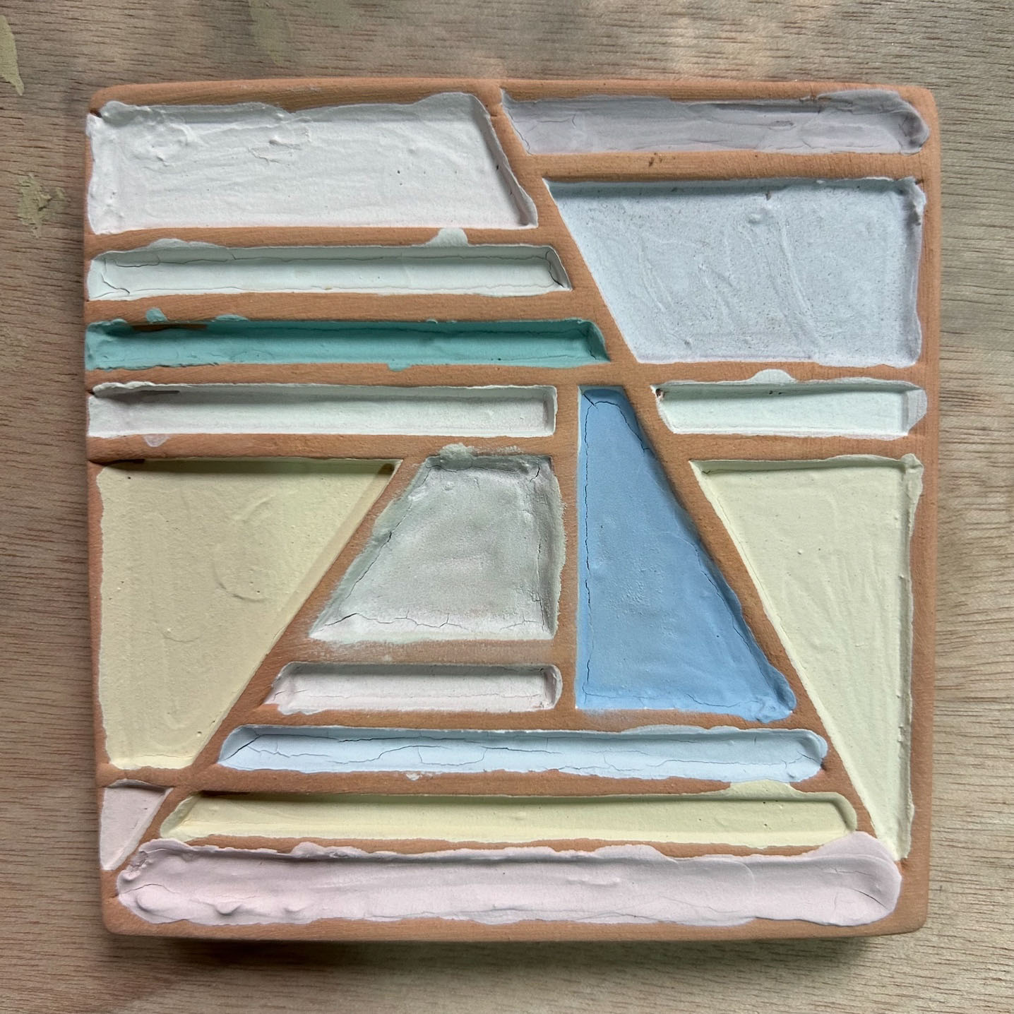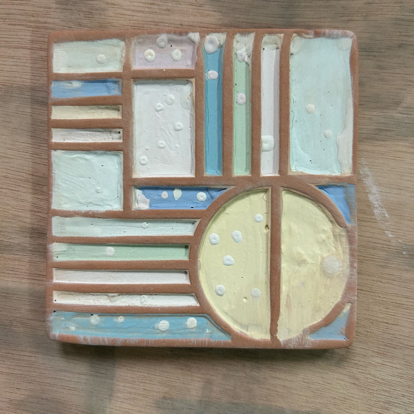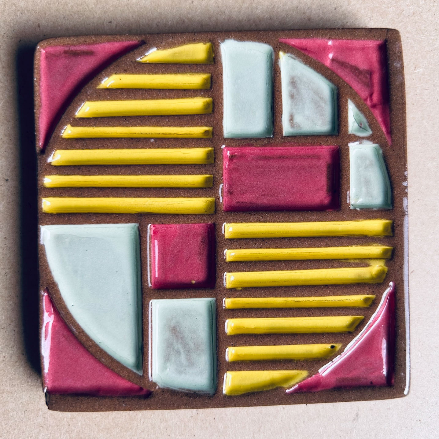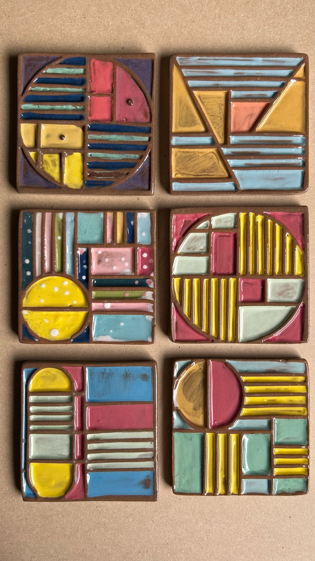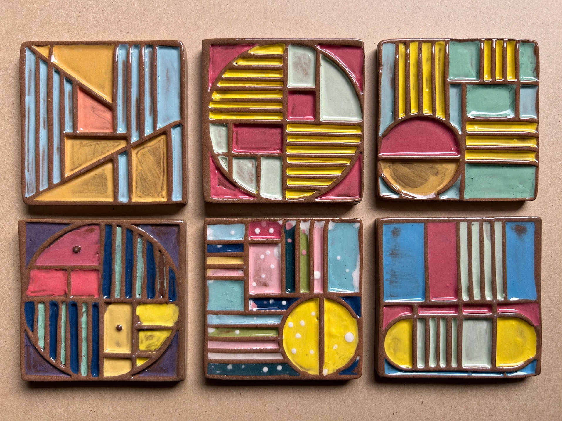 這次請我們來展示陶瓷3D列印技術以及講述我們化妝土的優點以及各種化妝土的技法,並且在先前先製作了有凹凸的花磚的素胚,並且指導與會老師將之填入化妝土後上釉燒成。